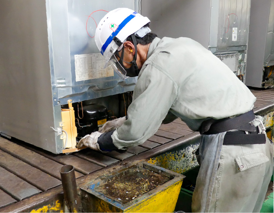 昨年は洗濯機の解体ラインの機械化を推し進め、